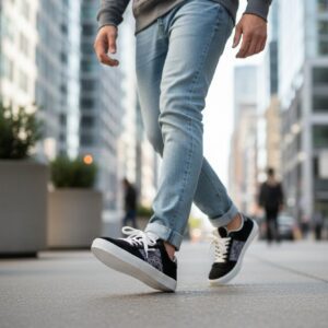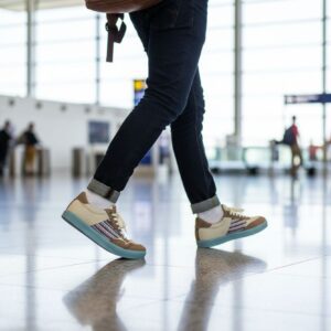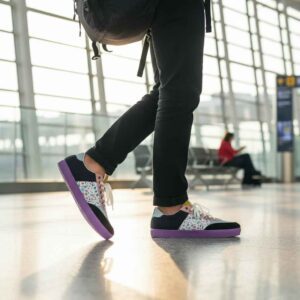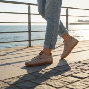 Turnschuhe aus einem grausamkeitsfreien Material, das sich ähnlich wie Leder anfühlt und ähnliche Eigenschaften hat, aber völlig vegan und frei von Tierleid ist.