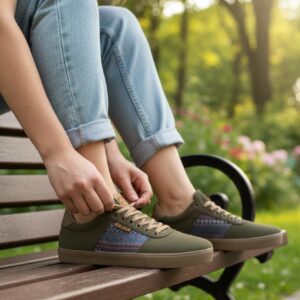 Turnschuhe aus biologischer und recycelter Baumwolle.
